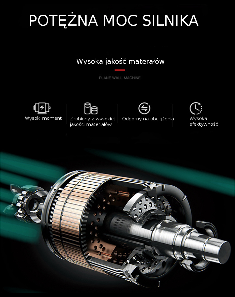Bez szczotkowy silnik w maszynie może pracować wydajnie zarówno przy niskich, jak i wysokich prędkościach. Silnik o dużej mocy 3000 W daje stabilne ciśnienie i dużą wydajność 6l/min. |