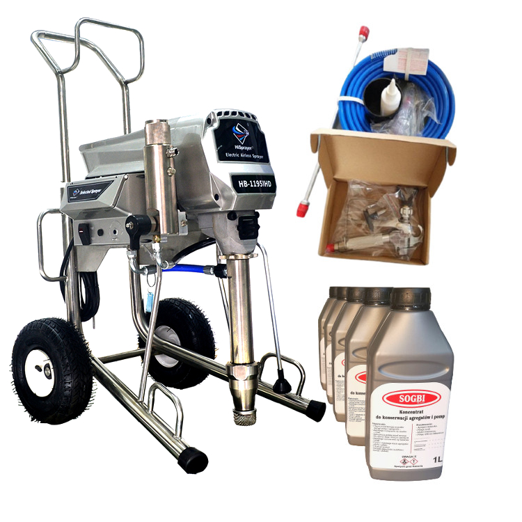 Agregat do natrysku składa się z potężnego silnika, solidnego stojaka oraz podzespołów zapewniających długą i nieprzerwaną pracę.