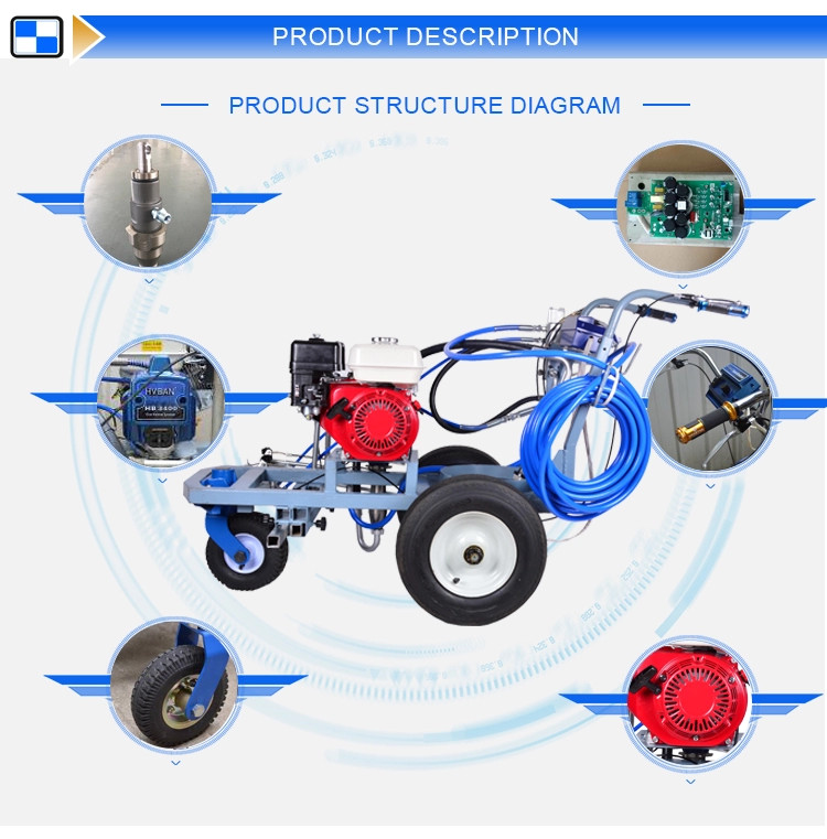 La machine de marquage routier HB5900 est équipée d’un moteur HONDA puissant de 5,5 CV, garantissant une pression de travail maximale de 22,7 MPa et un débit élevé de 5,3 L/min. Conçue pour un marquage précis et efficace des bandes routières, cette machine assure une application homogène des peintures et enduits sur diverses surfaces.