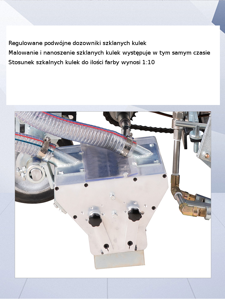 Est un équipement professionnel performant conçu pour l’application durable et précise de lignes et de signes routiers. Alimentée au gaz GPL, elle dispose d’un réservoir de granulés pouvant contenir jusqu’à 100 litres et d’un réservoir de billes de verre de 12 litres pour améliorer la visibilité nocturne et par mauvais temps.