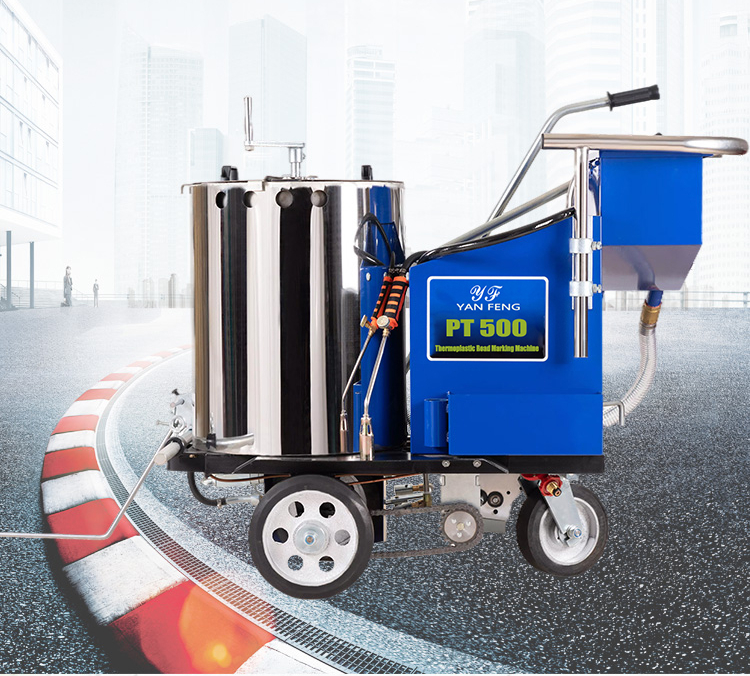 La marqueuse thermoplastique PT500 est un équipement professionnel alimenté au gaz GPL, conçu pour l’application précise de lignes routières durables. Elle dispose d’un réservoir de granulés de 100L et d’un réservoir de billes de verre de 12L, offrant une excellente visibilité.